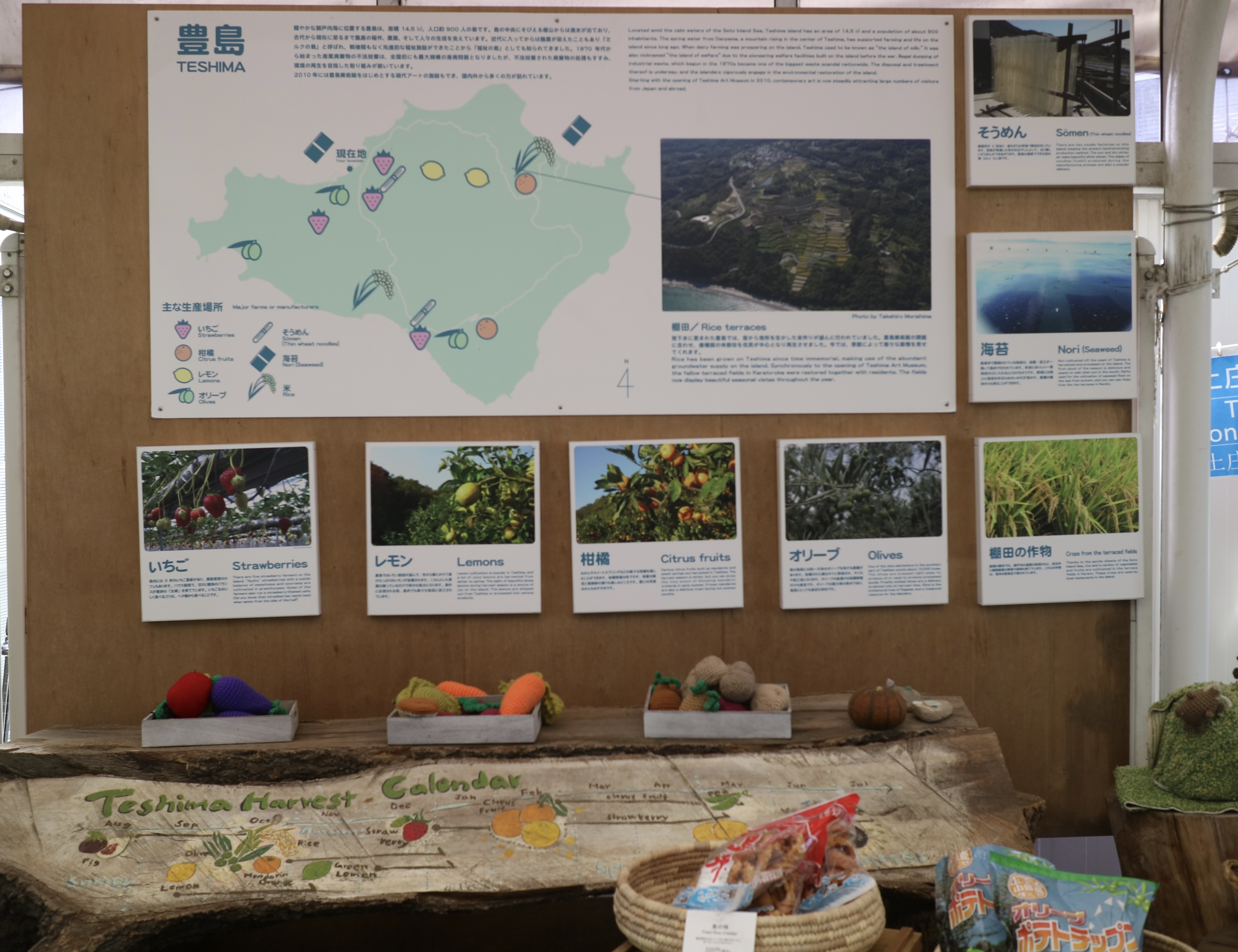 데시마 섬에서 재배되는 농작물(딸기, 감귤, 레몬, 올리브, 해초, 소면, 쌀)을 한눈에 들어오게 정리한 게 너무 재밌었는데!